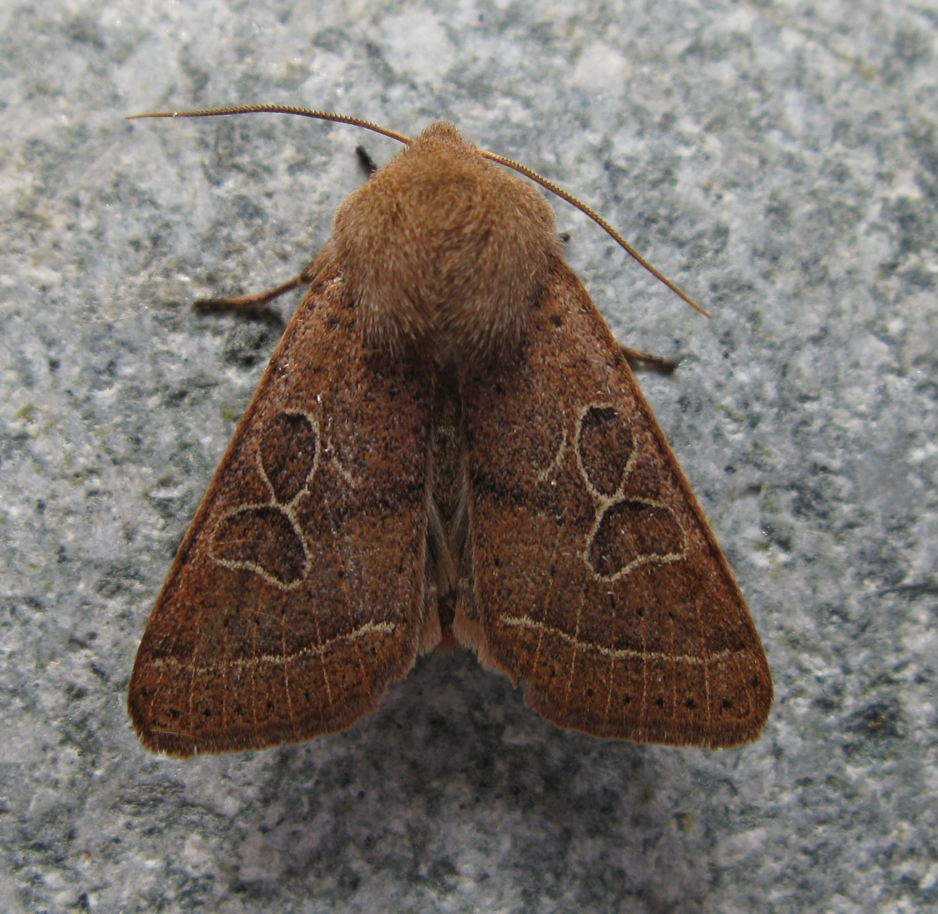Voorvleugellengte: 13-17 mm. Deze Orthosia-soort is te herkennen aan de afgeronde voorvleugelpunt, de opvallende licht omlijnde, grote ringvlek en brede niervlek en de gelijkmatig grijze achtervleugel. Ook de lichte, aan de binnenzijde iets donker afgezette golflijn op de voorvleugel valt op. De zeer variabele bruine grondkleur loopt uiteen van licht zandkleurig bruin via warmbruin en oranjeachtig of grijsachtig bruin tot zwartachtig bruin. Soms is een lichte tapvlek aanwezig.