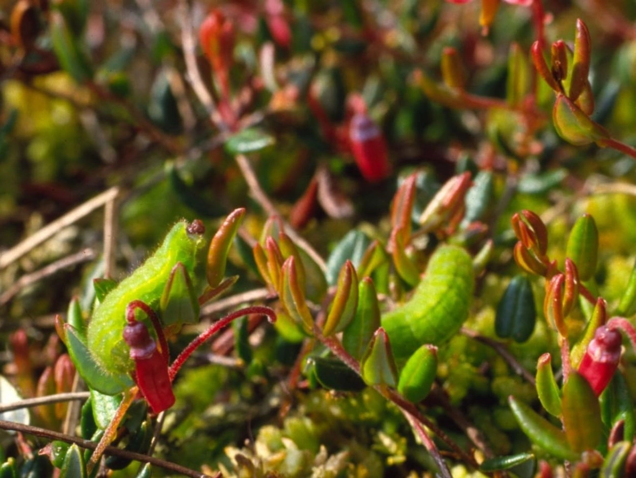 De afzetplaatsen van de eitjes liggen doorgaans in een laagte in de vegetatie. Het vrouwtje zet de eitjes op verschillende delen van de veenbes af, zoals de stengel of de onderkant van een blad.
