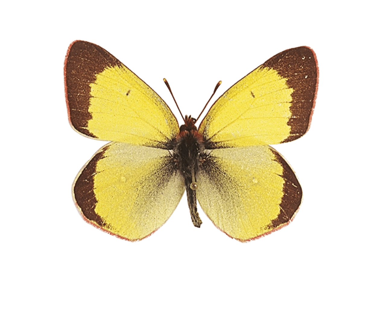 Voorvleugellengte: 22-28 mm. De zwarte band langs de achterrand van de bovenkant van de vleugels is ongevlekt. Bij het mannetje is de bovenkant geel tot groengeel, bij het vrouwtje lichtgeel tot wit. De franje van de vleugels is roze. De vlinder rust met dichtgevouwen vleugels.