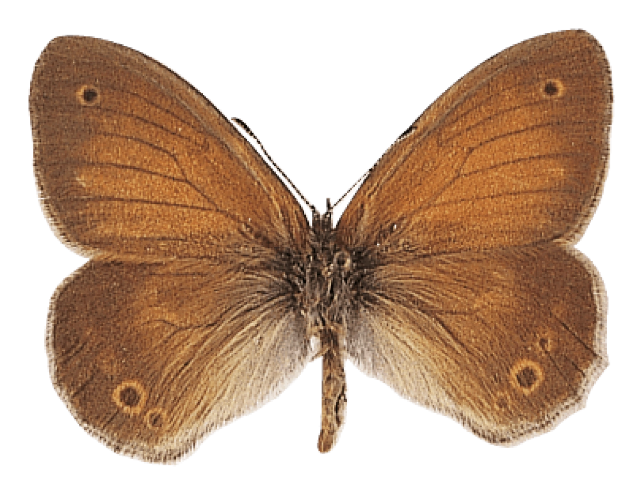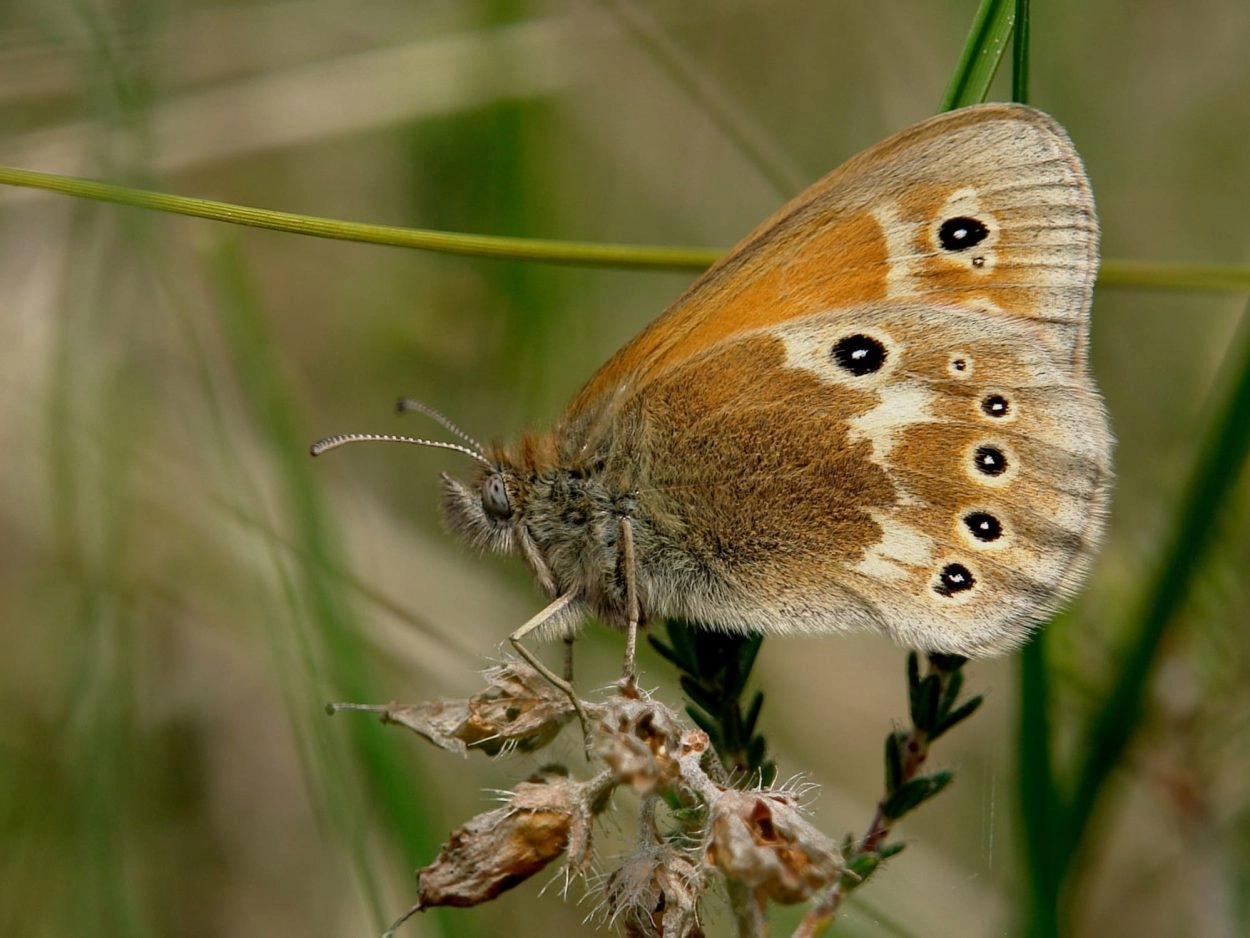 Hooibeestje (Coenonympha pamphilus).N.B.: vergelijk behalve de uiterlijke kenmerken ook de tijd van het jaar waarin de rupsen voorkomen, het habitat en de waardplant(en).