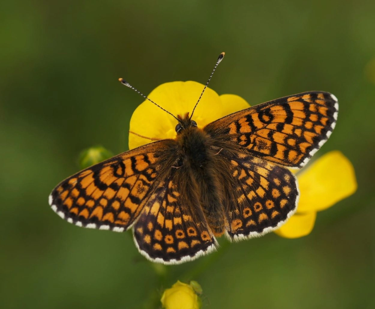 Voorvleugellengte: 16-21 mm. De bovenkant van de vleugels heeft bij het mannetje een tamelijk effen dof oranjebruine grondkleur; het vrouwtje heeft meer bruine vlekken dan het mannetje. Op de bovenkant van de achtervleugel bevindt zich in ieder segment van de buitenste dwarsband een zwarte vlek; deze vlekken zijn karakteristiek voor deze soort. De onderkant van de achtervleugel is crèmekleurig met oranje banden en zwarte strepen en vlekken.