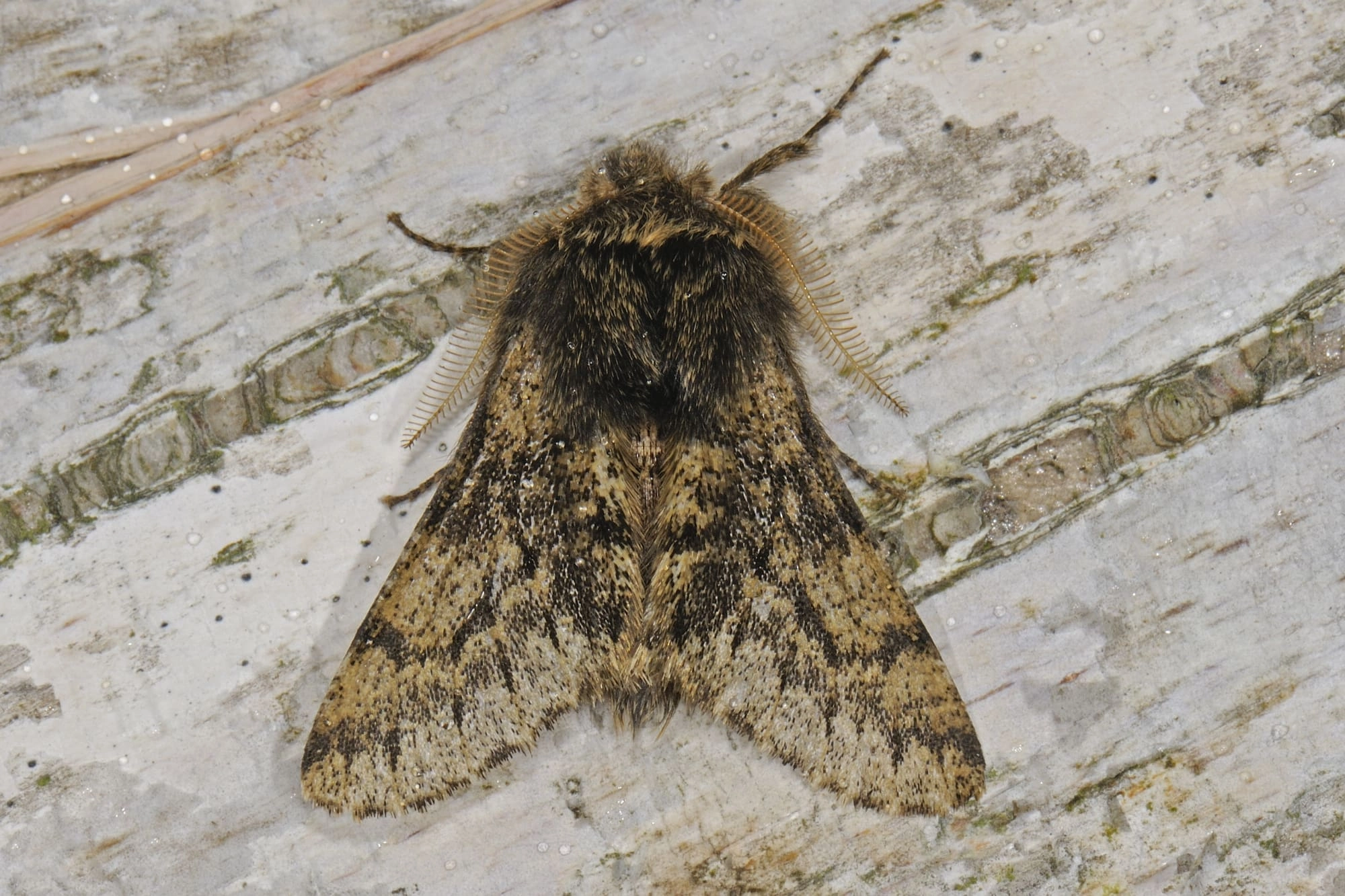 Perentak (Phigalia pilosaria).N.B.: vergelijk behalve de uiterlijke kenmerken ook de tijd van het jaar waarin de rupsen voorkomen, het habitat en de waardplant(en).