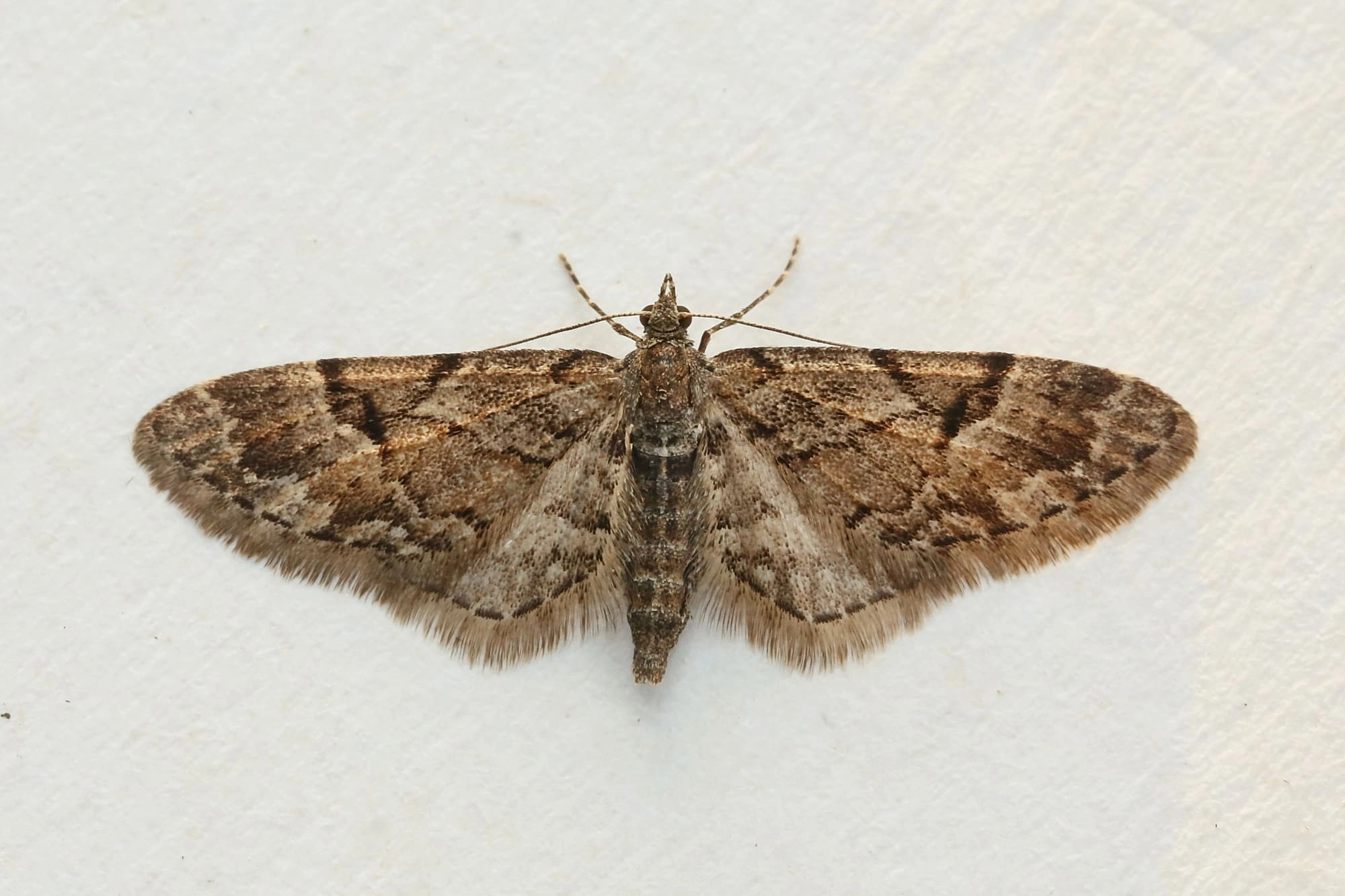 Voorvleugellengte: 8-11 mm. De vrij spitse voorvleugel is grijsbruin van kleur met daarop een roodbruinachtig grijze middenband, die altijd donkerder is dan de rest van de vleugel. De binnenrand van de middenband maakt een zeer scherpe hoek naar binnen, terwijl de buitenrand bijna recht van de voorrand naar de binnenrand van de vleugel loopt. De middenstip ligt in deze band en raakt soms bijna de buitenrand. De randen van de middenband vormen bij de voorrand samen met de middenstip min of meer een donker omlijnde driehoek. In de band langs de achterrand van de vleugel liggen twee donkere vlekken.