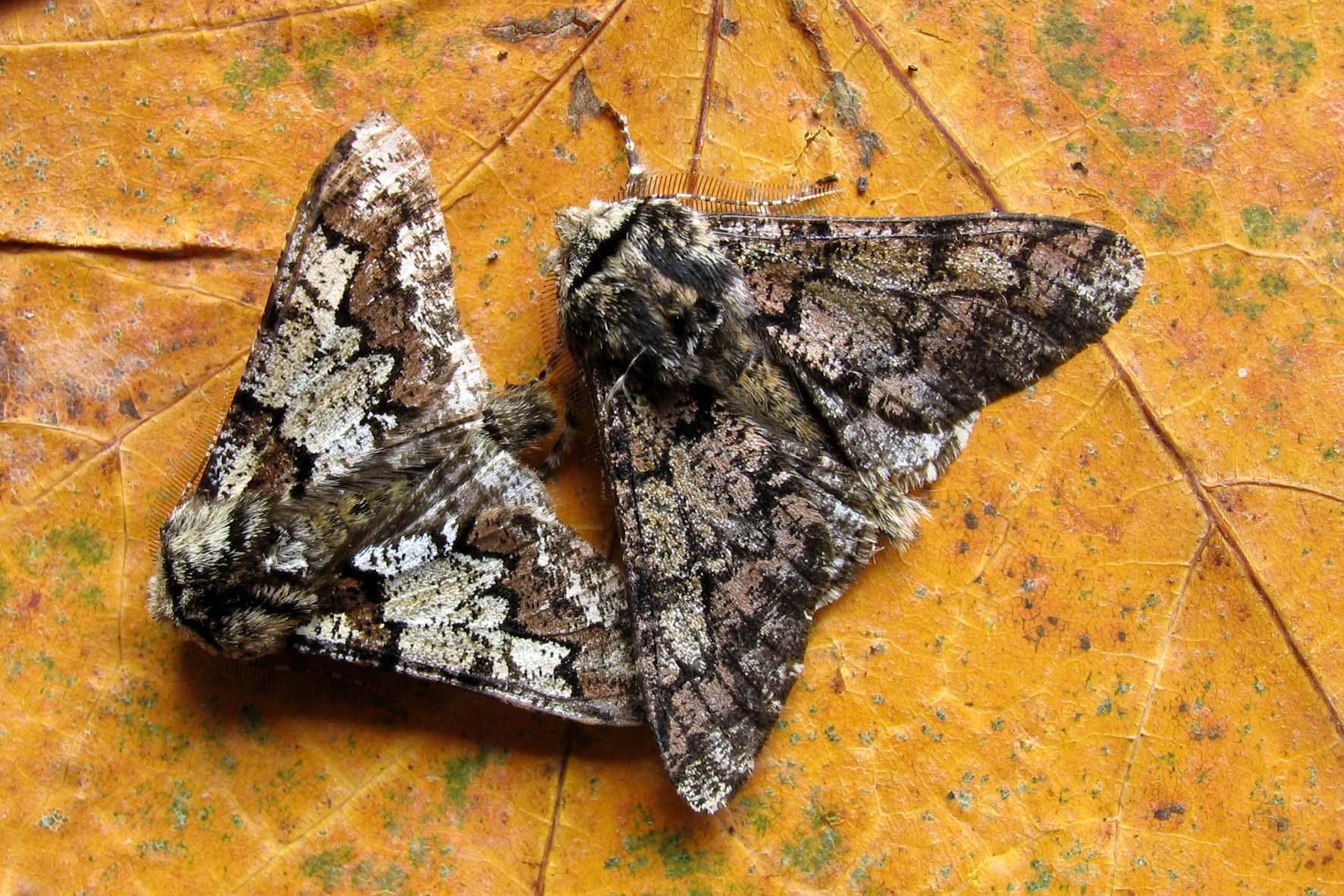 Peper-en-zoutvlinder (Biston betularia).N.B.: let bij deze twee soorten ook vooral op de tijd van het jaar waarin de rupsen voorkomen.