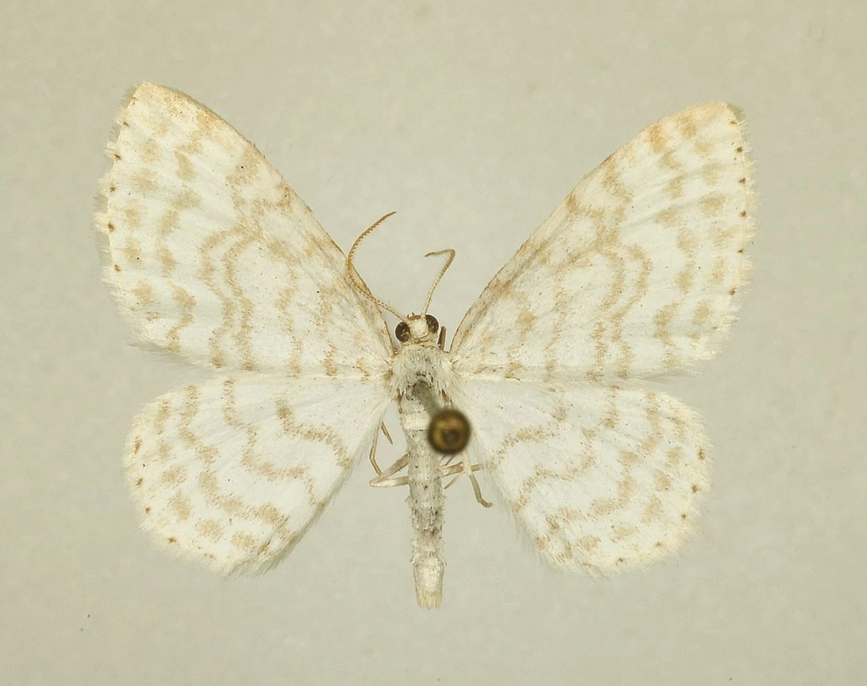 Voorvleugellengte: 9-11 mm. Dit spannertje heeft een grillig patroon van veel golvende dwarslijnen op de witte vleugels. De bruine tot grauwbruine lijnen liggen niet allemaal op regelmatige afstand van elkaar. Kenmerkend is de dubbele grillige middelste dwarslijn op de voorvleugel. De franjelijn bestaat uit zwarte stipjes. Soms is een vage bruine middenstip op de voorvleugel aanwezig. Er is weinig variatie.