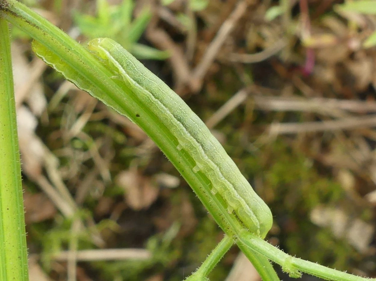 Rups: april-juni. De soort overwintert als pop in de grond.