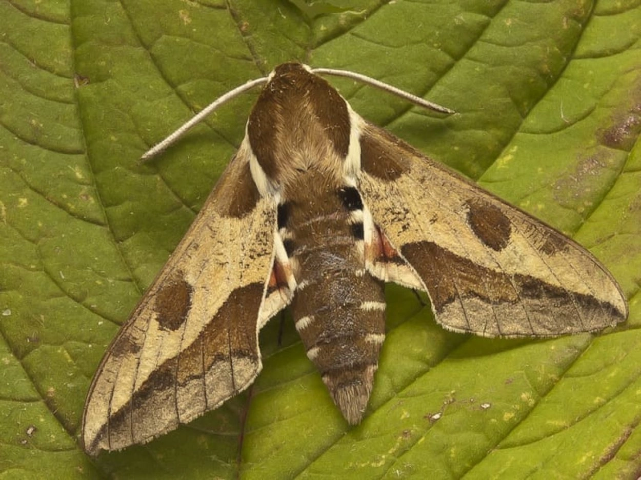 Walstropijlstaart (Hyles gallii).N.B.: vergelijk behalve de uiterlijke kenmerken ook de tijd van het jaar waarin de rupsen voorkomen, het habitat en de waardplant(en).