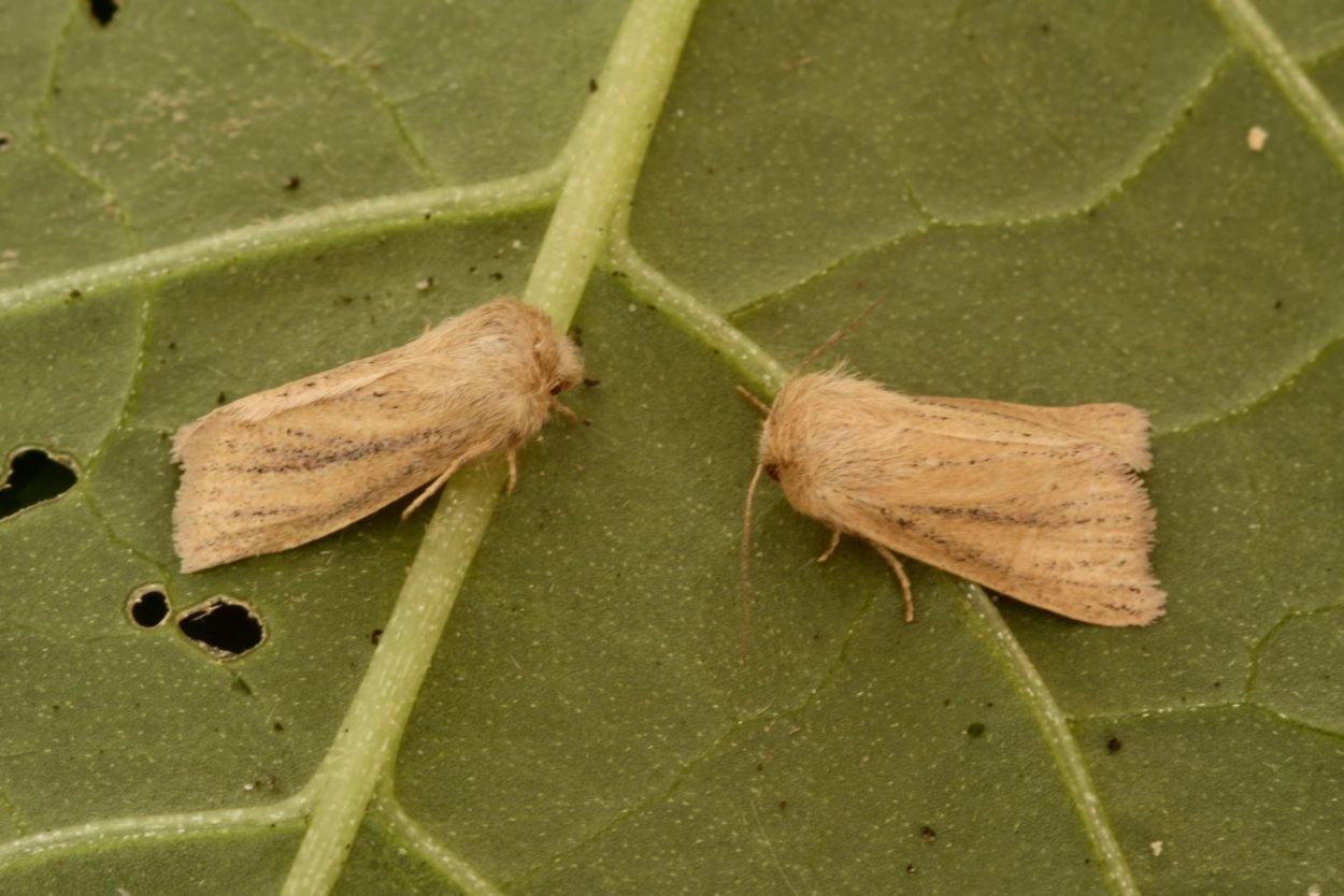 Zandhalmuiltje (Mesoligia furuncula), vale duinrietboorder (Photedes extrema), bochtige smele-uil (Photedes minima), zandhaverboorder (Longalatedes elymi), gele duinrietboorder (Photedes fluxa), russenuil (Coenobia rufa) en herfst-rietboorder (Rhizedra lutosa). N.B.: vergelijk behalve de uiterlijke kenmerken ook de tijd van het jaar waarin de rupsen voorkomen, het habitat en de waardplant(en).