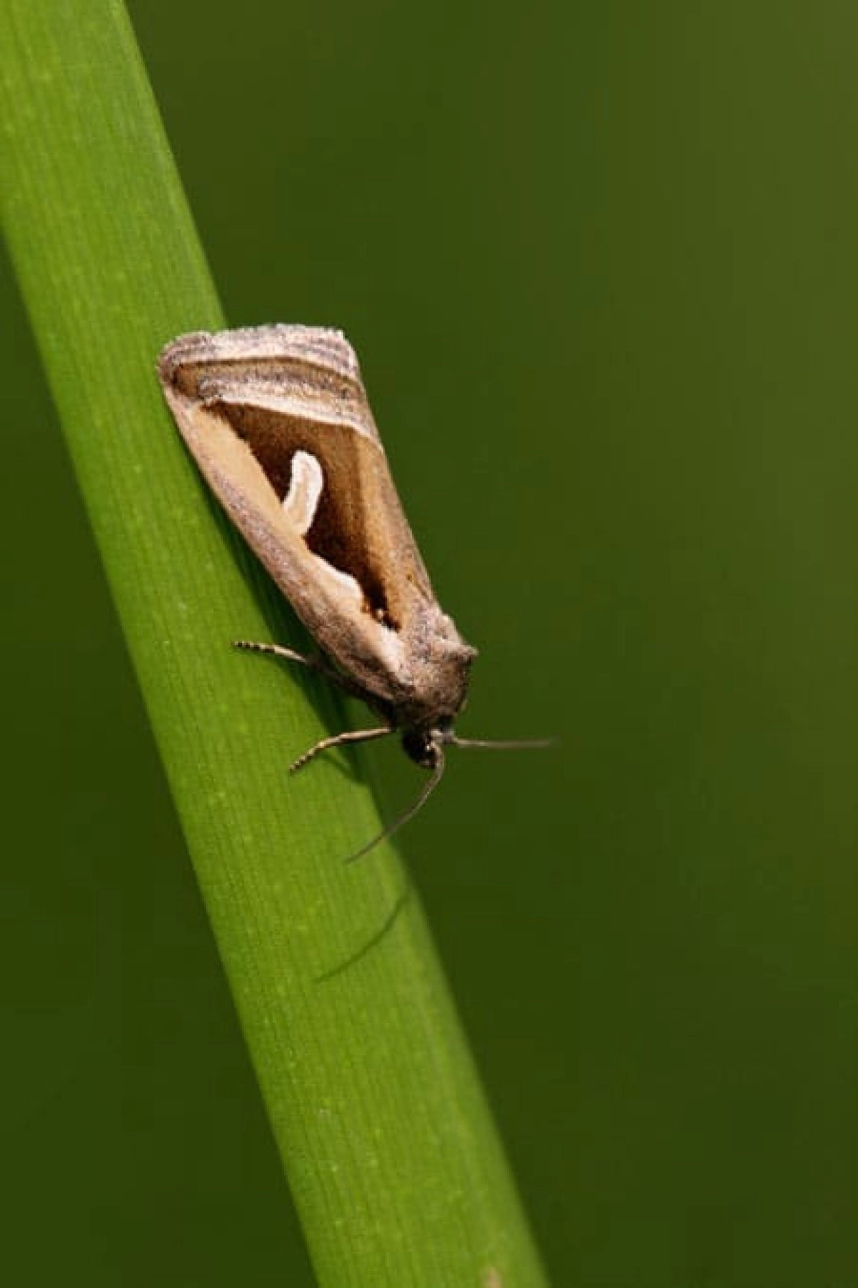 Zilverstreep (Deltote bankiana) en bonte marmeruil (Deltote deceptoria). N.B.: vergelijk behalve de uiterlijke kenmerken ook de tijd van het jaar waarin de rupsen voorkomen, het habitat en de waardplant(en).