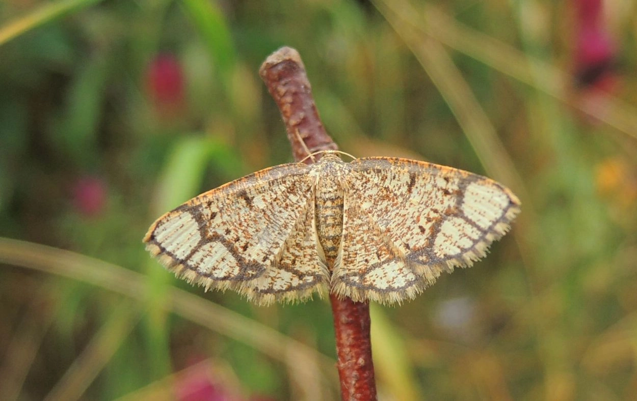Voorvleugellengte: 9-12 mm. Onmiskenbaar doordat de in boogjes verlopende buitenste dwarslijn opvallend afgetekende velden in het zoomveld vormt. De tekening bestaat verder uit korte, dwars op de binnenzijde van de buitenste dwarslijn staande streepjes, een dichte bespikkeling van met namen het midden- en wortelveld met fijne overdwars liggende vlekjes en een duidelijke op elke vleugel aanwezige langgerekte middenvlek. De grondkleur varieert van crèmekleurig tot strogeel. De kleur van de tekening van donkerbruin tot soms zwartachtig.