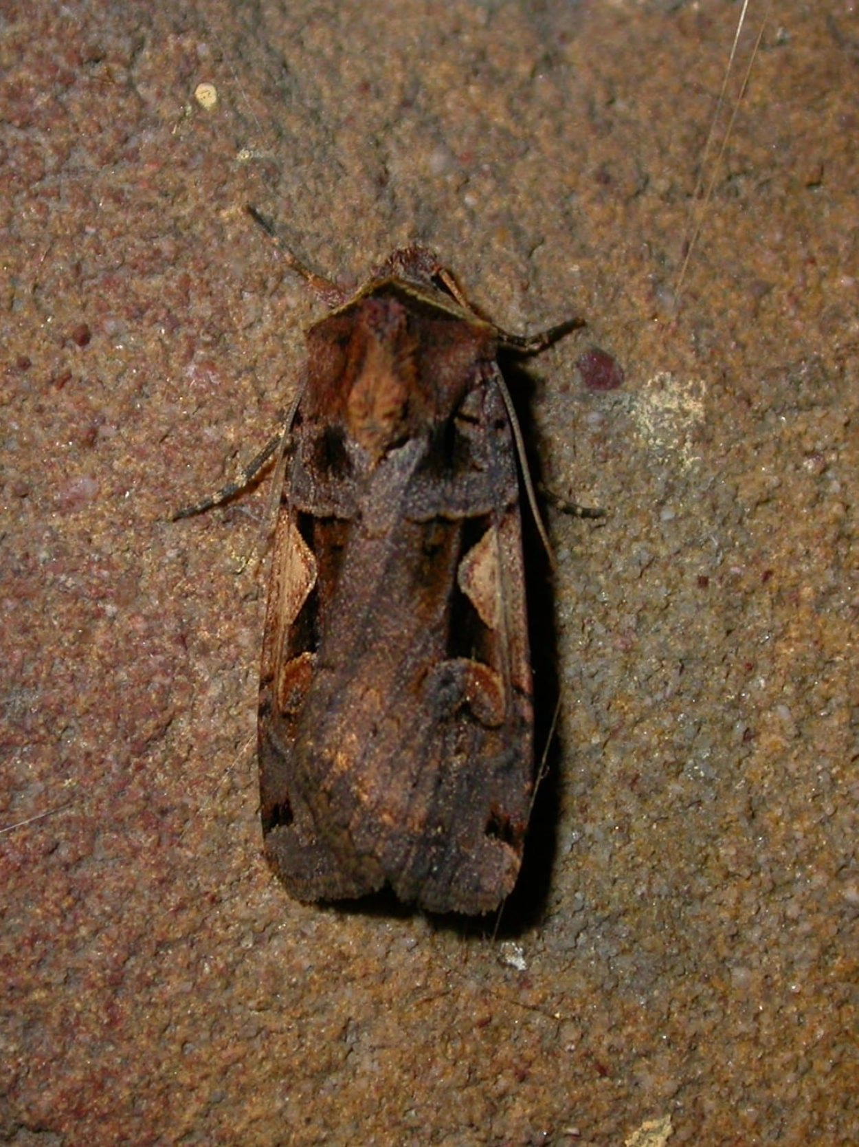 Volgeling (Noctua comes), kleine breedbandhuismoeder (Noctua janthina), open-breedbandhuismoeder (Noctua janthe), dubbelpijl-uil (Graphiphora augur), trapeziumuil (Xestia ditrapezium), driehoekuil (Xestia triangulum), bruine zwartstipuil (Xestia baja), kooluil (Mamestra brassicae), kleine huismoeder (Noctua interjecta) en splinterstreep (Naenia typica).N.B.: vergelijk behalve de uiterlijke kenmerken ook de tijd van het jaar waarin de rupsen voorkomen, het habitat en de waardplant(en).