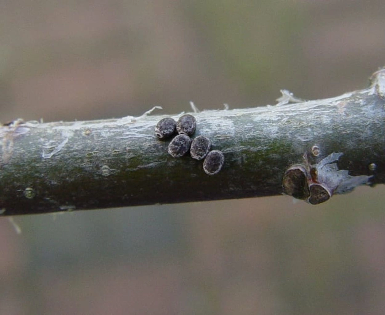 Rups: mei-juli. De rups foerageert ´s nachts en rust overdag tegen een twijg of tegen de boomschors. De rups verpopt zich onder de schors of in de strooisellaag in een cocon waarin aarde wordt verwerkt. De soort overwintert als ei vastgehecht aan de bast van een twijg of de stam.