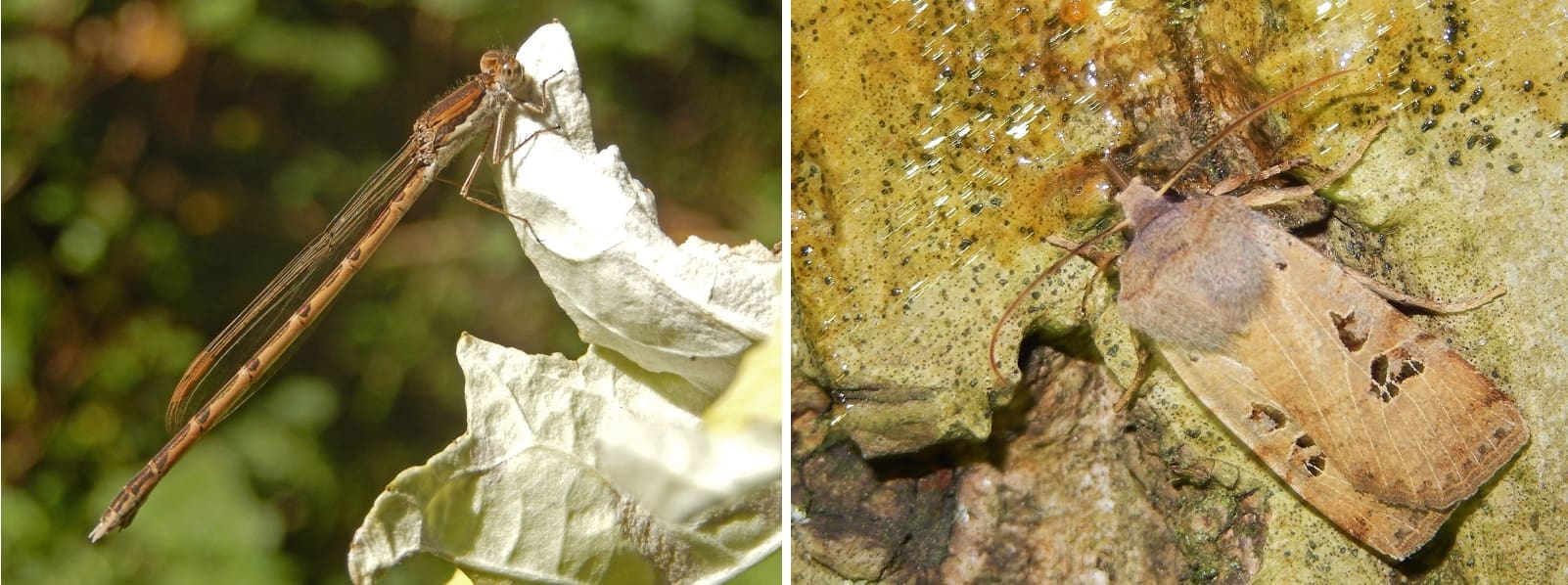 Zelfs op de regenachtige, winderige en kille dagen worden er wel vlinders en libellen doorgegeven. Maar als je dan in de details gaat kijken, blijkt het vaak om rupsen of poppen van vlinders te gaan en om de larven van libellen. Maar er zijn ook nog wel libellen te zien, want de twee winterjuffers overwinteren als juffer en zitten nu ergens, als imago, in hun overwinteringsgebieden. De bruine winterjuffer is een vrij algemene soort en ook overwinterend kun je deze in het hele land wel aantreffen. Dan moet het wel goed winterweer zijn, met een niet te lage temperatuur en een zonnetje erbij. Dan worden ze actief en vallen ze meer op. Als ze helemaal in winterrust zitten, aangeklemd tegen een bruin takje, zie je ze snel over het hoofd. De andere winterjuffer, de noordse, is een zeldzaamheid. Ze planten zich voort in Noordwest-Overijssel en in het oosten van de Noordoostpolder. Maar als in het najaar de dagen korter worden, gaan ze op reis. Dan kunnen ze tientallen kilometers vliegen en eindigen ze op heideveldjes in Drenthe en Zuidoost-Friesland. Daar brengen ze de winter door en in het voorjaar vliegen ze weer terug om zich voort te planten.