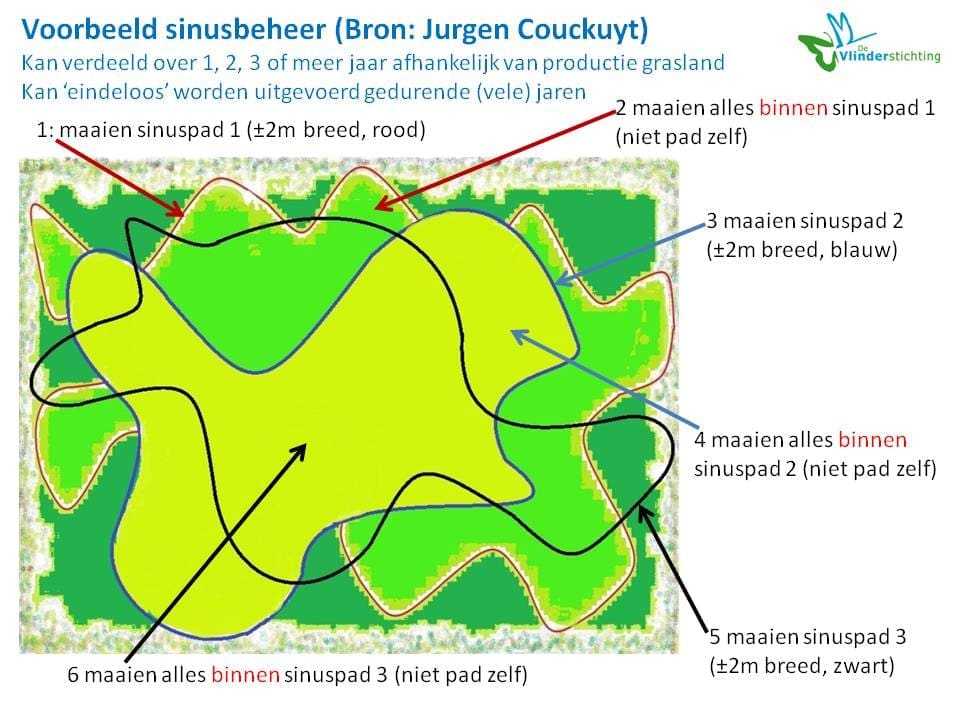 Je maait eerst een sinuspad en pas na enige tijd alles binnen het sinuspad. Dat vergroot de variatie.