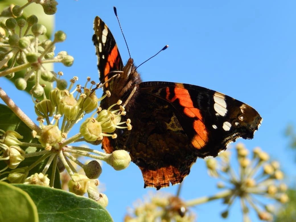 Waar te zien: Zwervende atalanta´s kunnen vrijwel overal gezien worden, op plaatsen met veel nectarrijke planten vaak in grote aantallen.