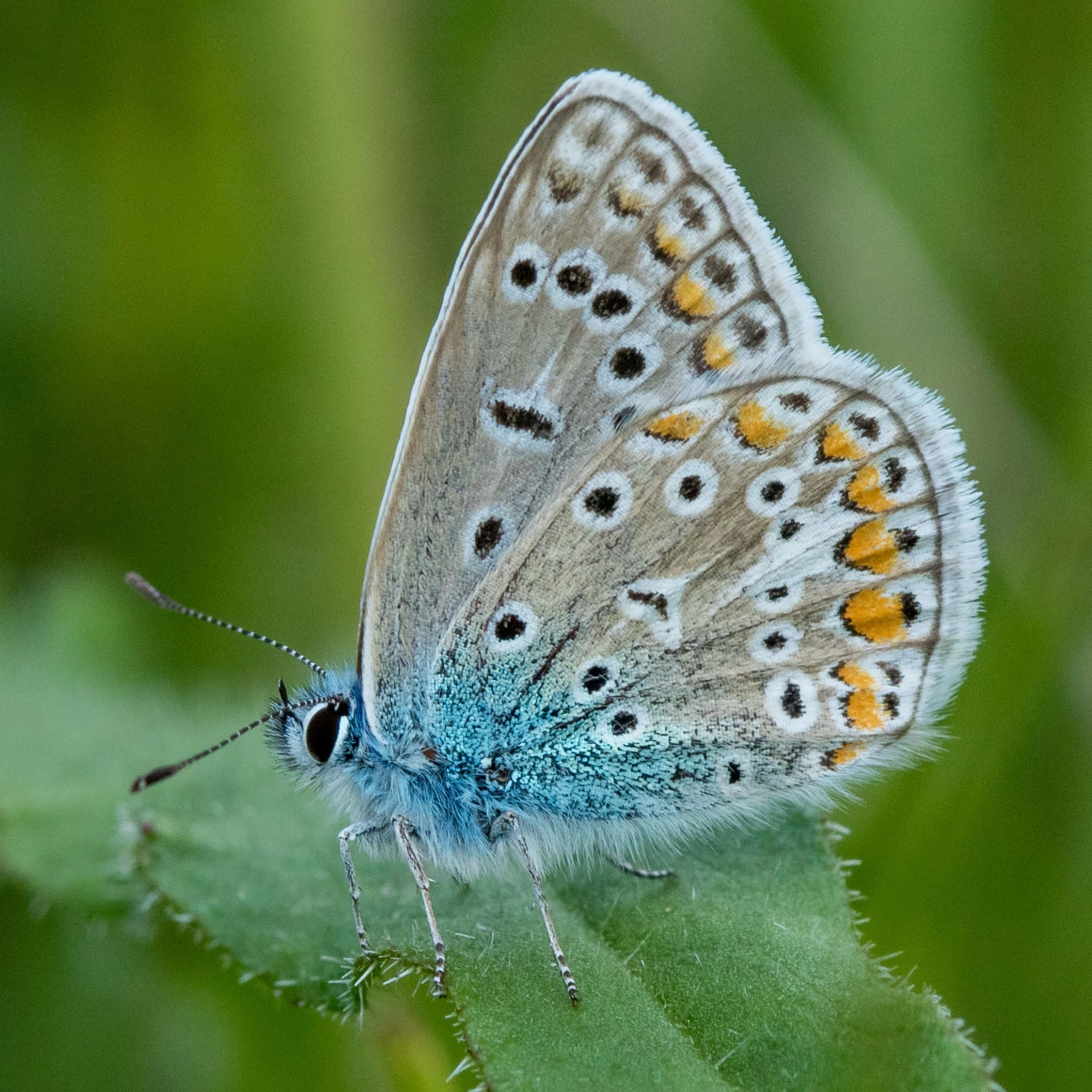 Het icarusblauwtje houdt zijn vleugel in rust dichtgeklapt, haaks op zijn lichaam. Dit is een dagvlinder.