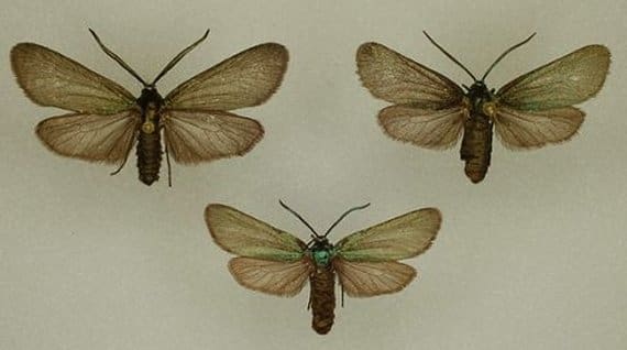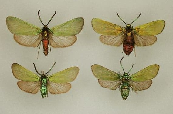 voorvleugel zwart (soms met groene zweem, vooral bij het vrouwtje);