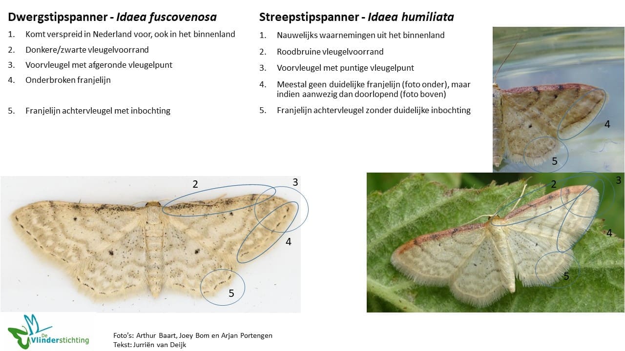 De dwergstipspanner heeft de volgende kenmerkende eigenschappen die hem van de streepstipspanner onderscheiden: