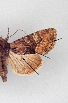 - het meest constante en betrouwbare kenmerk bevindt zich op de achtervleugels: bij de tweekleurige grasuil (A. illyria) is de middenstip op de achtervleugel aanwezig als een dunne streep;