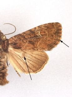 - bij de rietgrasuil (A. unanimis) en de tweekleurige grasuil (A. illyria) is de franje geblokt;