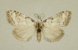 • opvallende kenmerken: lichte achtervleugel met middenstip, dwarslijnen op voorvleugel