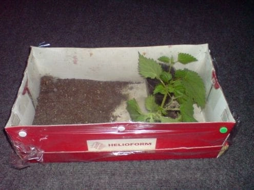 Gebruik een kartonnen doos, bijvoorbeeld een schoenendoos, als kweekbak. Door het gebruik van een kartonnen doos wordt vrijkomend vocht geabsorbeerd door het karton. Hierdoor ontstaat minder vervuiling en daardoor ook minder kans op schimmelvorming en ziekte. Een glazen pot is niet aan te raden omdat het vocht er moeilijk uit kan, en de pot vanwege de smalle opening moeilijk schoon te houden is.