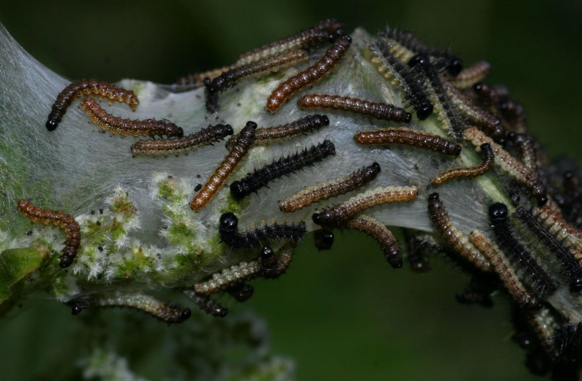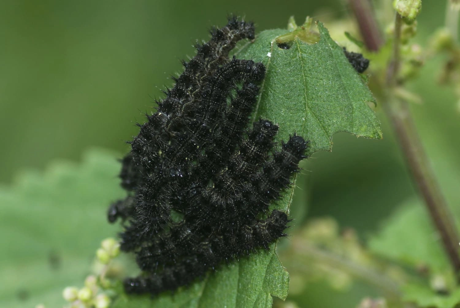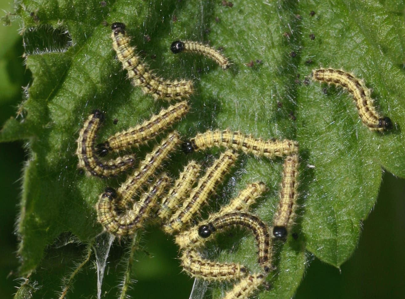 De rupsen van de Kleine vos leven in groepen op grote brandnetels.
