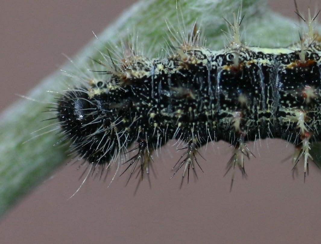 Soms komen ook volledig zwarte rupsen voor.