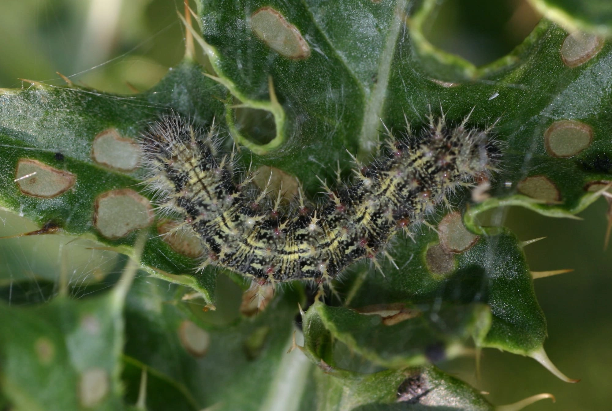 De doorns zijn middellang en vertakt (vergelijk met landkaartje en dagpauwoog).