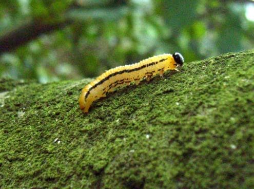 Verwarring van rupsen met bladwesplarven