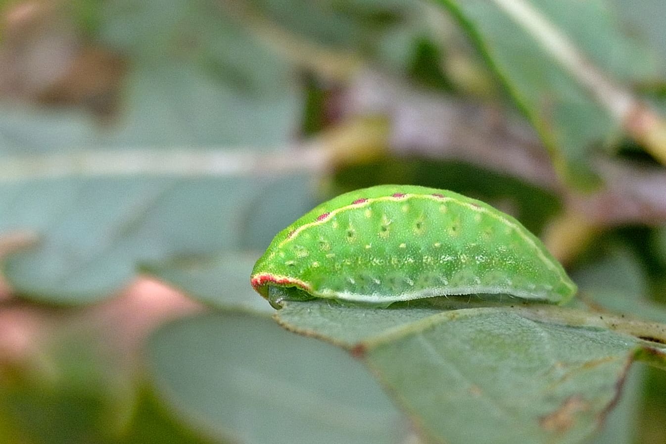 Vooral op een foto is het kenmerk van de buikpoten niet altijd even goed te zien, maar gelukkig zijn er meer verschillen. Bladwesplarven hebben bijna altijd een wat geribbeld lijf en de afzonderlijke segmenten zijn bijna niet zichtbaar.