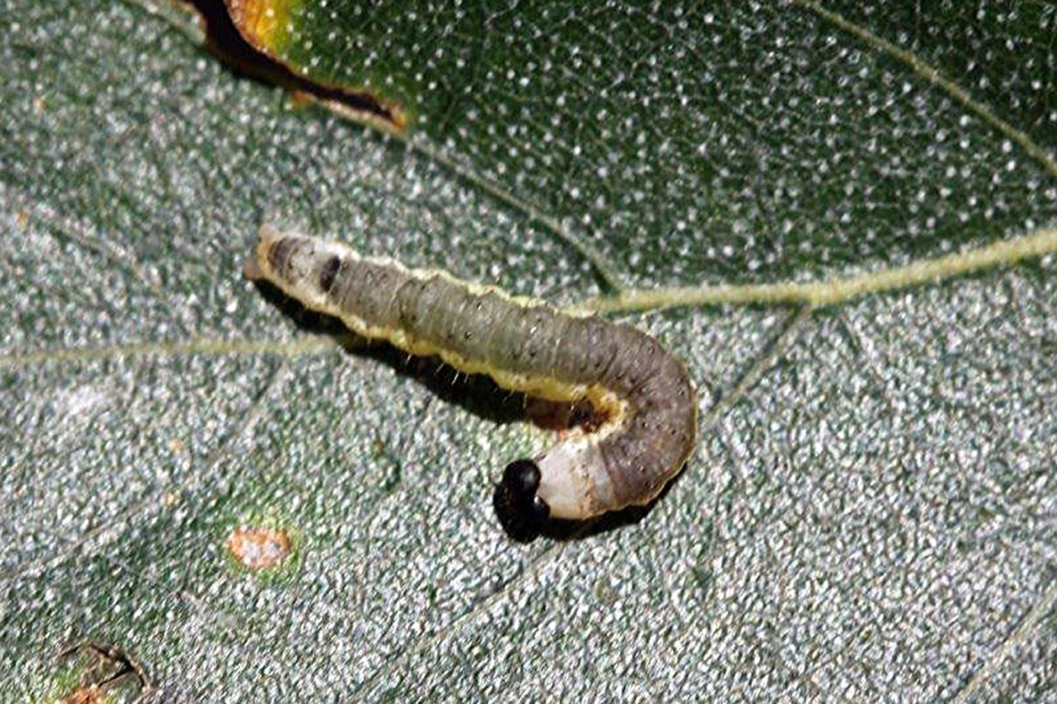Fotograaf: Frederic de Schaetzen, rups in bladkokertje