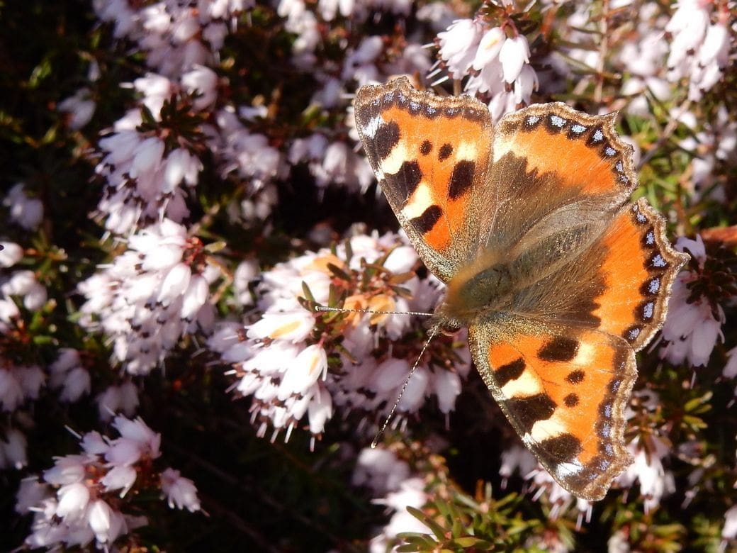 De afgelopen week was het regelmatig zonnig weer en ondanks de 8 graden zijn er wel degelijk overwinterende dagvlinders tevoorschijn gekomen: citroenvlinder, kleine en grote vos, dagpauwoog en atalanta. Die laatste is eigenlijk een trekvlinder en geen echte overwinteraar, want als het flink koud is zullen ze de winter niet overleven, maar in zo’n kwakkelwinter redden ze het blijkbaar prima.