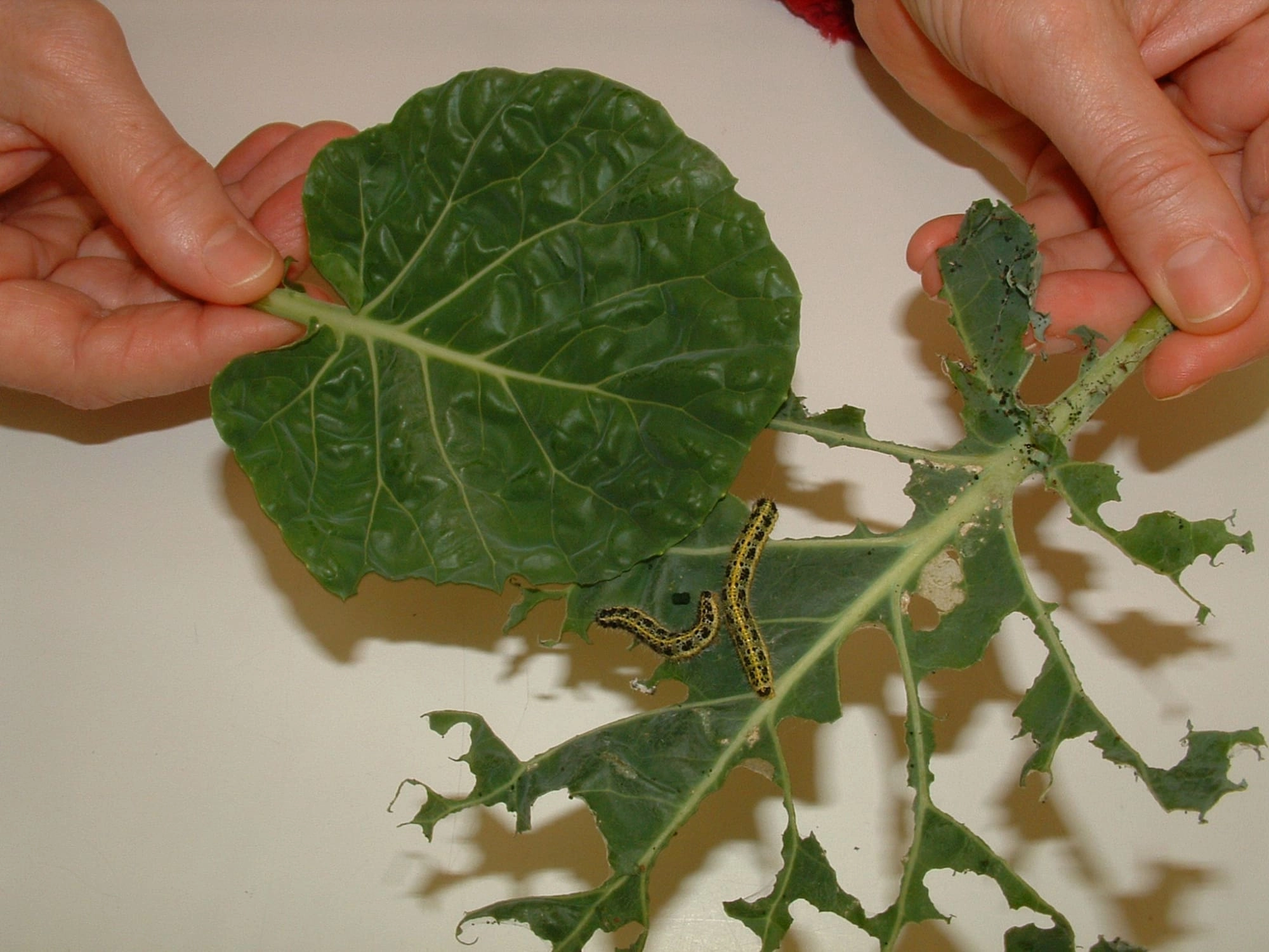 De rupsen uit het pakketje moet je voorzichtig op een koolblad zetten. Dat kun je het beste doen door ze met een penseel op een lepel te schuiven. Met de vingers oppakken is schadelijk voor rupsen: je knijpt snel te hard. Je kunt de oude blaadjes met de rupsen ook naast de nieuwe koolblaadjes leggen. Dan lopen de rupsen vanzelf naar het nieuwe blad. Vooral voor kleine rupsjes is dit de gemakkelijkste manier.