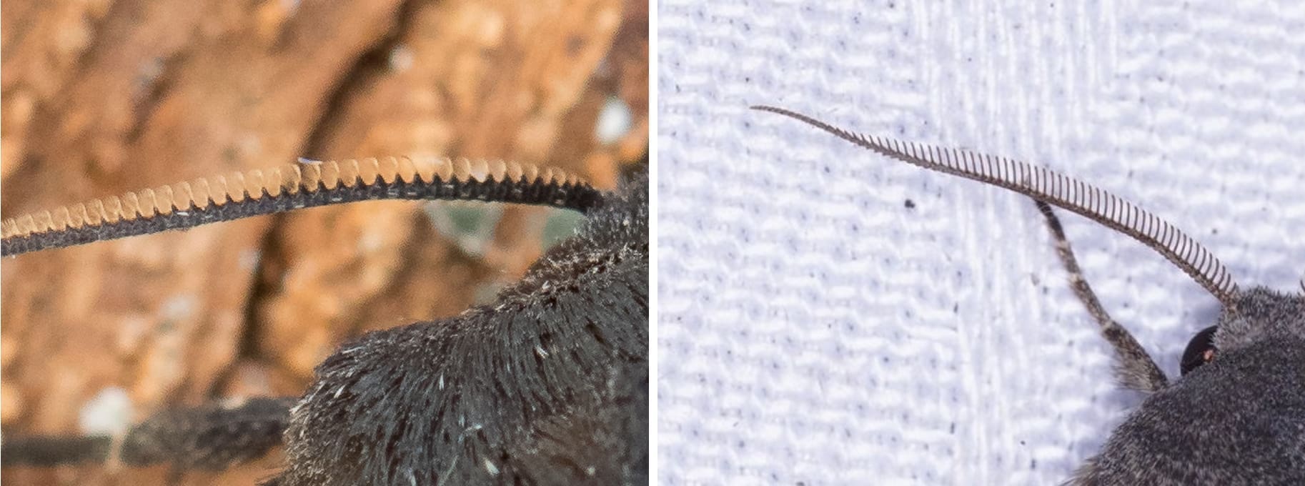 Van de geveerde witvleugeluil bestaan verschillende vormen die te herkennen zijn aan de sterk zigzaggende dwarslijnen en een zwarte lengtestreep in het wortelveld samen met de witte achtervleugels. Over de andere drie soorten is nog vaak discussie. De zwarte witvleugeluil is zwart, met een bepaalde lichtval wat glimmend. De vleugels zijn langgerekt en de vlinder heeft een wit/geelachtige onderkant van de niervlek. Toch kan deze verward worden met egale en donkerdere vormen van heidewitvleugeluilen in de duinen. Dan kan er bij mannetjes gekeken worden naar de geveerdheid van de antennen. Bij de zwarte witvleugeluil zijn de antennen kort gekamd terwijl die bij de heidewitvleugeluil langer geveerd zijn. Nu is de tijd van de witvleugeluilen, dus ga de komende weken op zoek naar deze fraaie nachtvlinders.