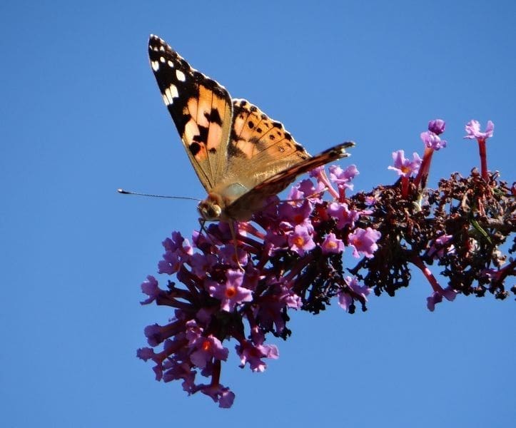 In het voorjaar zagen we al veel distelvlinders, maar in juni waren de meeste distelvlinders verdwenen. Verder getrokken naar het noorden, of doodgegaan. Maar dat was stilte voor de storm: eind juli kwam de volgende generatie uit de pop. En dat zorgt voor een explosie van vlinders! “Nog nooit zag ik zoveel vlinders in mijn tuin, met tientallen tegelijk zitten ze op de vlinderstruik”.