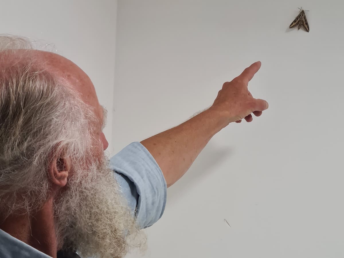 Tegen de gevel van een huis aan de Ruyterstraat in Oudeschild op Texel zat afgelopen dinsdagochtend een heel bijzondere vlinder. De bewoner, Frank Biesboer, herkende hem als gestreepte pijlstaart (Hyles livornica), een soort die normaal gesproken voorkomt in Zuid-Europa, Afrika en Azië. Hij meldde het beest, met een spanwijdte van een slordige zeven centimeter, met een foto op Waarneming.nl. Daar kreeg hij bericht dat ook in Engeland de laatste dagen enkele waarnemingen van deze soort waren geweest. Volgens De Vlinderstichting zijn er tot nog toe pas enkele tientallen waarnemingen van deze zeer zeldzame trekvlinder in Nederland geweest. Toen de waarneming via de website van Waarneming.nl bekend werd, werd Frank gelijk gebeld door enkele fanatieke vlinderaars, maar helaas was de zeldzaamheid al gevlogen voordat er mensen konden komen kijken. Later op de dag bleek dat de vlinder ongemerkt naar binnen was gevlogen en konden de liefhebbers alsnog ’s avonds bij Frank in de bijkeuken komen kijken. Daar had de vlinder op de muur een plekje gevonden.