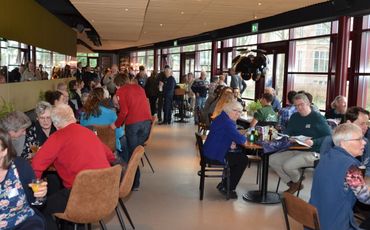 De hele dag door krijgt u gratis koffie en thee. De lunch wordt geserveerd op het 'terras' achter de grote zaal. De borrel na afloop is in het theatercafé op de begane grond. Hebt u geen lunch besteld, dan vindt u in de binnenstad van Wageningen op een minuutje lopen diverse eetcafés en restaurants. Zelf lunch meenemen mag natuurlijk ook!