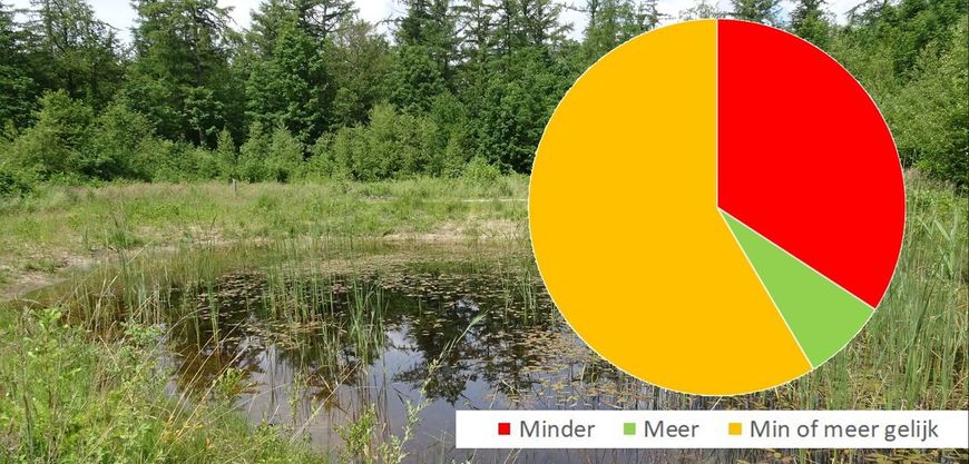 Onder de soorten die minder aanwezig waren, bevinden zich bruine glazenmaker en azuurwaterjuffer, maar ook het lantaarntje. Dit is wel de minst kritische libel van Nederland: je kunt lantaarntjes vinden bij viezige sloten tot prachtige vennetjes. Toch is ook deze juffer in verspreiding achteruitgegaan en zien we op de telroutes ook steeds minder lantaarntjes. Ook andere algemene, weinig kritische soorten zoals grote en kleine roodoogjuffer en variabele waterjuffer gaan recent achteruit. Waardoor nemen deze soorten af? Droogte lijkt niet de verklaring, want ze leven niet op plekken die opdrogen. Daarnaast is de afname al langer geleden begonnen, voor de periode van de recente droge zomers.