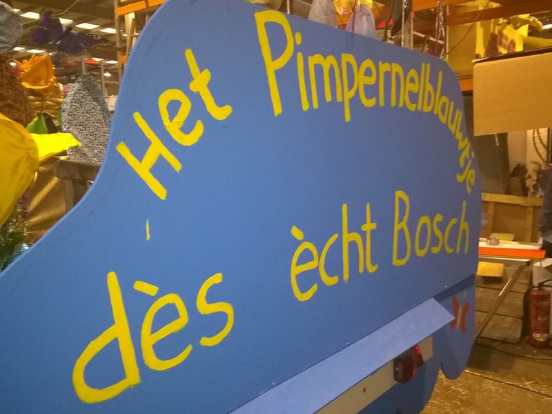 Natuurlijk staan er informatieborden, staat het in de krant en zijn er folders. Maar om het project op een ludieke manierbij een groot publiek onder de aandacht te brengen hebben we in 2016 mee gedaan met een pimpernelblauwtjeswagen aan de carnavalsoptocht van Den Bosch, dan Oeteldonk geheten. op 8 februari werd de optocht wegens de weersomstandigheden afgelast, maar op 6 maart is hij alsnog gehouden. Naast de platte wagen hebben we ook een loopgroep op de been gekregen, van pimpernellen, mieren, rupsen & vlinders. Deze lieten confettiblauwtjes fladderen en gaven informatie aan het publiek over het project Blues in the marshes, over het pimpernelblauwtje en de andere zaken die het project oplevert.