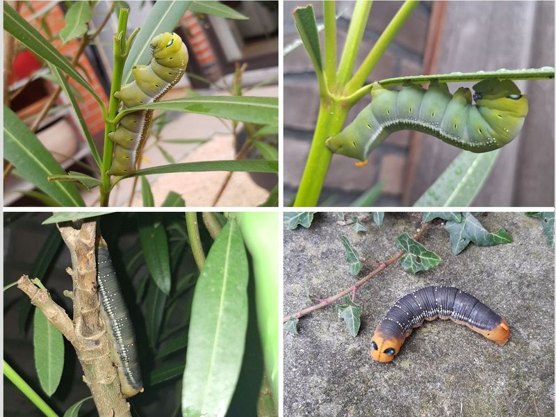 De oleanderpijlstaart staat te boek als een zeer zeldzame trekvlinder uit subtropische gebieden, die zelden in ons land wordt gezien. Dit jaar (en ook vorig jaar al) is dat anders. Er zijn tientallen meldingen van deze prachtige nachtvlinder. Het zijn vooral waarnemingen van rupsen, maar ook de vlinder zelf wordt wel gezien.