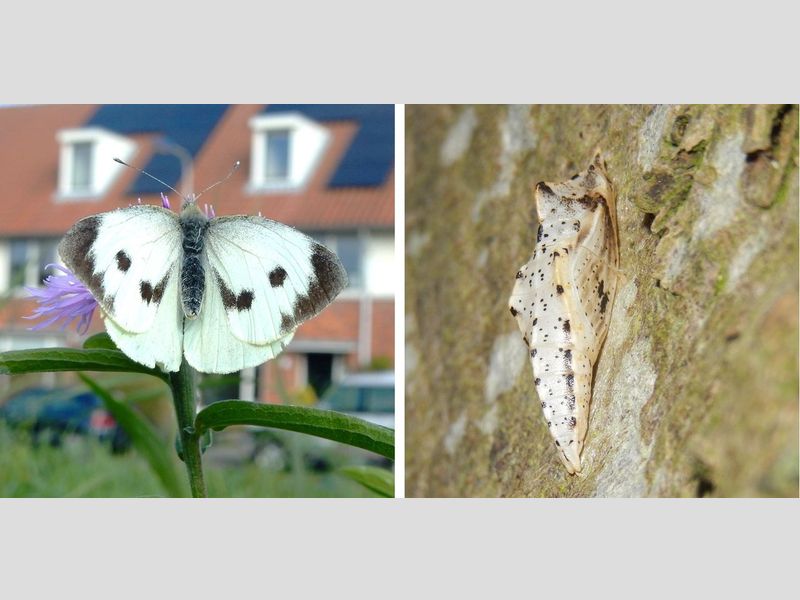 Bekende vlinders die als pop de winter doorbrengen zijn de koolwitjes. Zowel klein geaderd witje, als klein en groot koolwitje, maar ook de nieuwkomer het scheefbloemwitje, zijn popoverwinteraars. Deze witjes worden zelfs nu, begin november, nog wel af en toe gezien. Waarschijnlijk zullen deze vlinders nu geen levensvatbare nakomelingen meer kunnen voortbrengen, want als er de komende vier weken een flinke nachtvorst optreedt zullen eventueel aanwezige rupsen het loodje leggen. De poppen kunnen wel prima tegen de vorst.