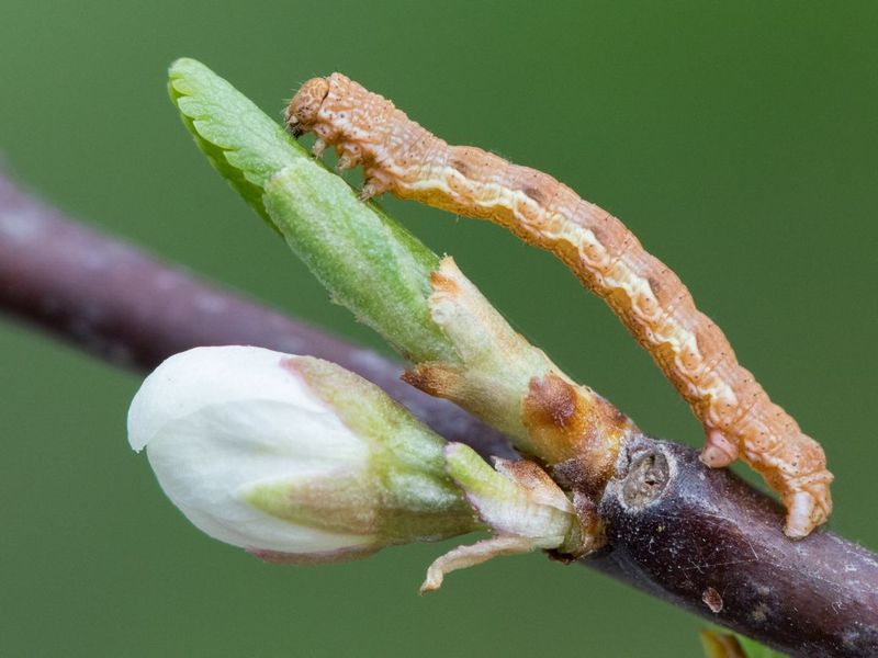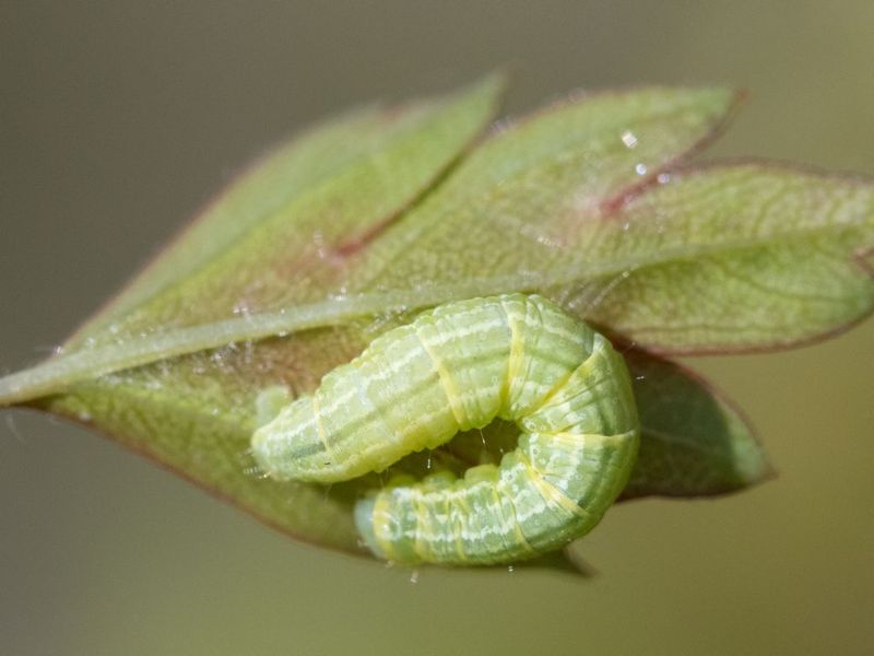 De rupsen van de kleine wintervlinder zijn misschien wel de meest algemene rupsen die je in deze periode kunt tegenkomen. Ze zijn groen van kleur met witgele lengtestrepen en je kunt ze op allerlei loofbomen en struiken vinden.