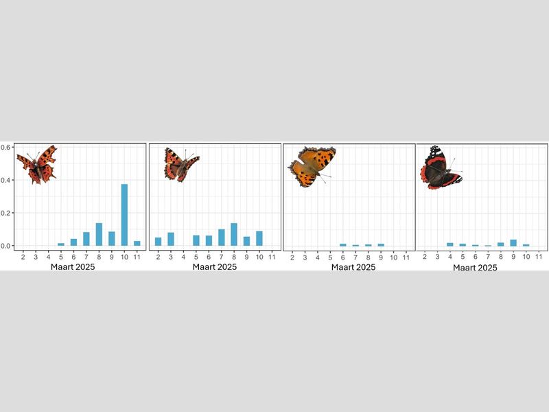 De komende weken zullen deze soorten nog volop kunnen worden gezien en worden aangevuld met de vlinders die als pop overwinteren. Als u ze ziet, geef ze door via Waarneming.nl en Telmee, en het liefst via flextellingen.