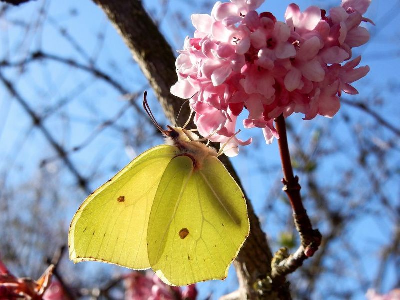 De komende weken verschijnen de citroenvlinders weer. Ze zitten nu nog verstopt in groenblijvende struiken als klimop of coniferen. Het voorjaar is ook het moment dat de vlinders paren en dat de eitjes worden afgezet. Via het rups- en popstadium verschijnen dan in juni, juli de nieuwe vlinders. Deze vlinders gaan, vaak na een zomerse rustperiode, ook weer in overwintering. De citroenvlinder heeft dus maar één generatie per jaar.