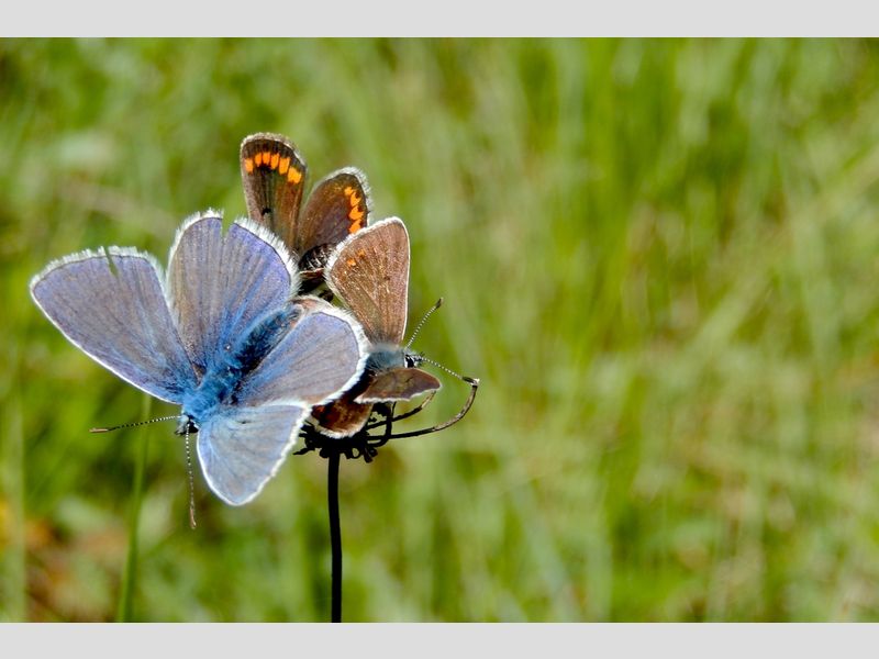 Laatstgenoemde twee soorten blauwtjes zitten bij voorkeur in bloemrijke graslanden, duinen en bermen. De waardplant van het algemene icarusblauwtje is vooral rolklaver, maar ook wel kleine klaver en andere vlinderbloemigen. De rupsen van bruin blauwtje zijn gespecialiseerd op reigersbek en ooievaarsbek. Ze kunnen gewoon door elkaar voorkomen en dan is de herkenning soms wel een probleem. Een flink deel van de foto’s die de waarnemers bij hun melding van bruin blauwtje plaatsen blijken toch icarusblauwtjes te zijn. Dat probleem geldt niet voor mannetjes van icarusblauwtje, want die zijn felblauw van boven, terwijl bruin blauwtje, zoals de naam al doet vermoeden, bruin is.