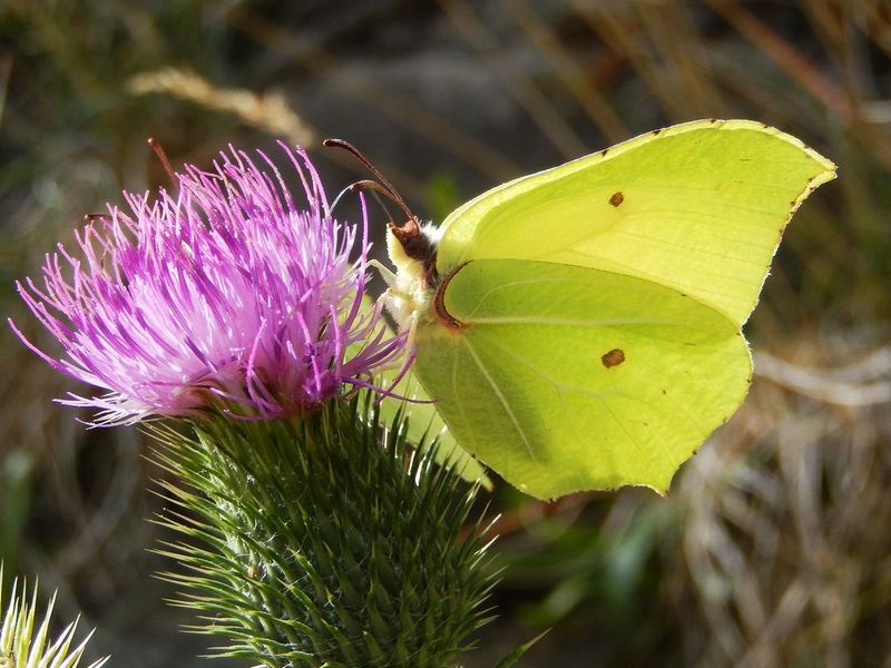 In de zomer zie je citroenvlinders drinken op bijvoorbeeld vlinderstruik, klis of distels. Hier op speerdistel. In de zomer zie je citroenvlinders drinken op bijvoorbeeld vlinderstruik, klis of distels. Hier op speerdistel.