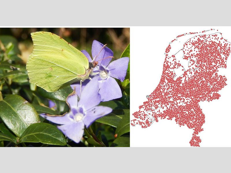 Waarnemingen van de citroenvlinder in 2023. De soort komt verspreid over het hele land voor (Bron kaartje: NDFF). Waarnemingen van de citroenvlinder in 2023. De soort komt verspreid over het hele land voor (Bron kaartje: NDFF).