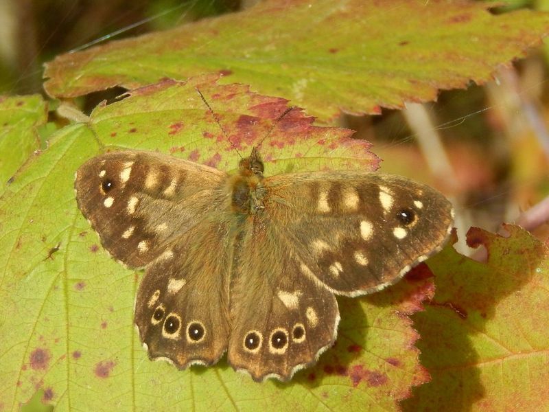 Een andere popoverwinteraar die we nu veel te zien krijgen is het bont zandoogje. Ook deze is gebonden aan bomen en struiken, maar voelt zich ook uitstekend thuis in tuinen. Mannetjes zijn sterk territoriaal. Dat betekent dat ze, vanaf een vast punt, de omgeving scherp in de gaten houden; zodra er iets in ‘hun’ gebied verschijnt gaan ze er achteraan. Een ander mannetje wordt soms tot tientallen meters omhoog achtervolgd en weggejaagd. Vrouwtjes mogen natuurlijk wel blijven, want daar was het hem om te doen.