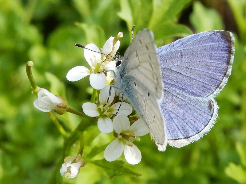 Het boomblauwtje wordt nu overal verspreid in het land gezien. Deze algemene vlinder overwintert als pop. Het is een prachtig felblauw vlindertje dat veel voorkomt in tuinen, maar ook op heiden en in bossen en bosranden. Als je nu, in april, een blauw vlindertje ziet dan is dat zeker ende vast een boomblauwtje. Het icarusblauwtje, waarvan de mannetjes ook felblauw van boven zijn, verschijnt pas in mei en bovendien heeft deze vlinder een ander leefgebied.